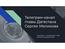 Изиева Аида Казбековна, Руководитель пресс-службы Главы РДЭто официальный аккаунт главы Дагестана Сергея Меликова, который сегодня объединяет более 41 тысячи подписчиков. Он ведется с марта 2022 года. В канале публикуются актуальные новости о мероприятиях с участием руководителя республики, недельные и месячные итоги, личные обращения, а также его реакции на значимые и резонансные события.