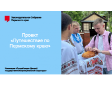 Шляпникова Лариса Александровна, начальник управления по взаимодействию с органами местного самоуправления, общественностью и СМИ аппарата Законодательного Собрания Пермского краяЦикл из семи фильмов «Путешествие по Пермскому краю» – это уникальный медиапродукт, созданный в 2025 году по следам живых, аутентичных туристических маршрутов, разработанных школьниками, педагогами и семьями Пермского края. Гидами и соавторами профессиональных телевизионных картин выступили сами жители, что обеспечило неподдельную искренность и глубину погружения в жизнь малых городов и сел. В рамках проекта «Путешествие по Пермскому краю» в 2025 году было снято семь фильмов о регионе. Так был создан цикл фильмов «Путешествие по Пермскому краю» о г. Перми, г. Чердыни, г. Усолье, г. Верещагино, с. Фоки Чайковского округа, с. Суда Уинского округа и Юсьвинском округе.