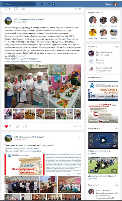 "PR-кампания по продвижению ООО «Калининская АЭС-Сервис» в социальных сетях" (страница ООО "Калининская АЭС-Сервис" в социальной сети VK)