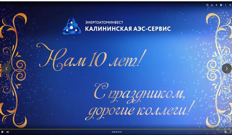 Результатом проекта стал видеофильм с участием более 100 работников предприятия. Фильм транслируется на всех корпоративных мероприятиях ООО "Калининская АЭС-Сервис", размещён в социальных сетях. Отзывы и отклики посмотревших свидетельствуют о том, что видео "затронуло" сердца зрителей, вызывает гордость персонала за причастность к предприятию, способствует желанию работников и дальше работать в коллективе.