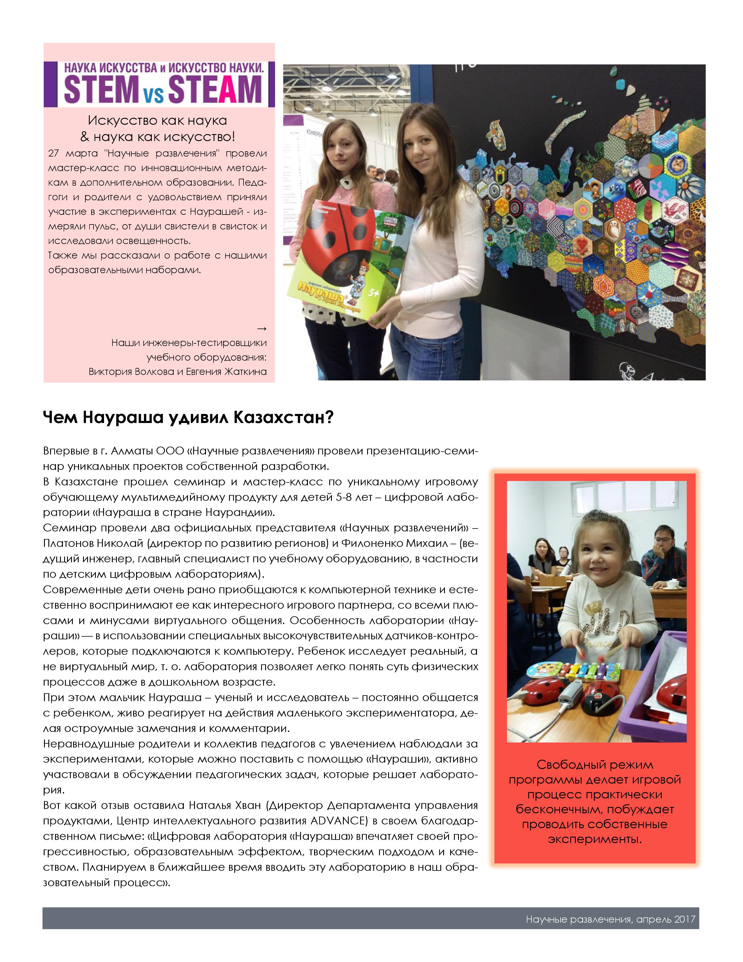 Особенности работы производства компании «Научные развлечения» таковы, что многим сотрудникам рабочих специальностей нет необходимости заводить корпоративную электронную почту. Сборка оборудования проходит без применения компьютеров, поэтому использование только электронного способа коммуникаций неэффективно. Газета в печатном варианте стала связующим звеном, соединяющим офисных сотрудников и тех, кто трудится на производстве.