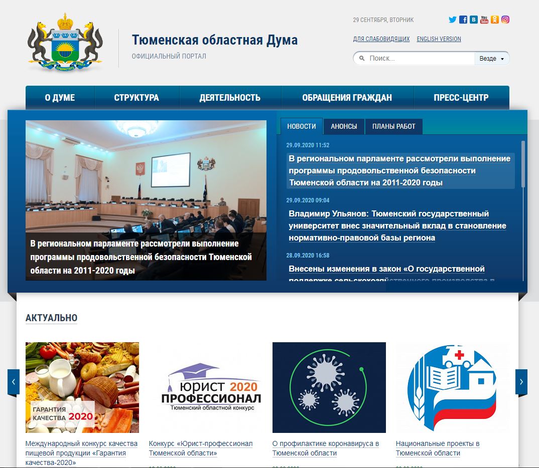 5.2. Разработан новый дизайн английской версии портала Тюменской областной Думы, в котором использованы единые стилистические и дизайнерские решения как на основном портале, так и на его английской версии.