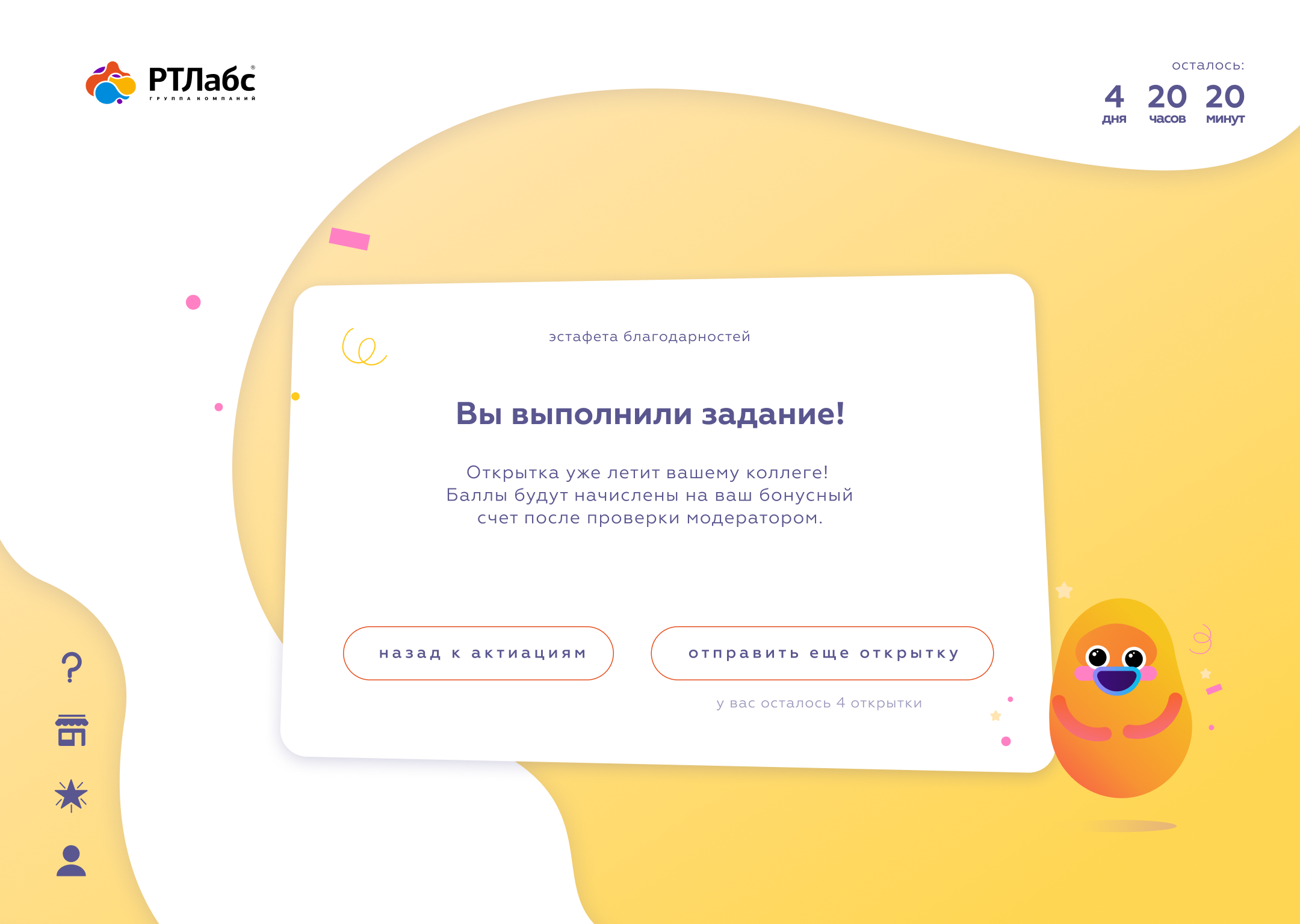 За каждое выполненное задание участникам начисляются баллы, за которые в конце кампании они могут приобрести стильный корпоративный мерч.