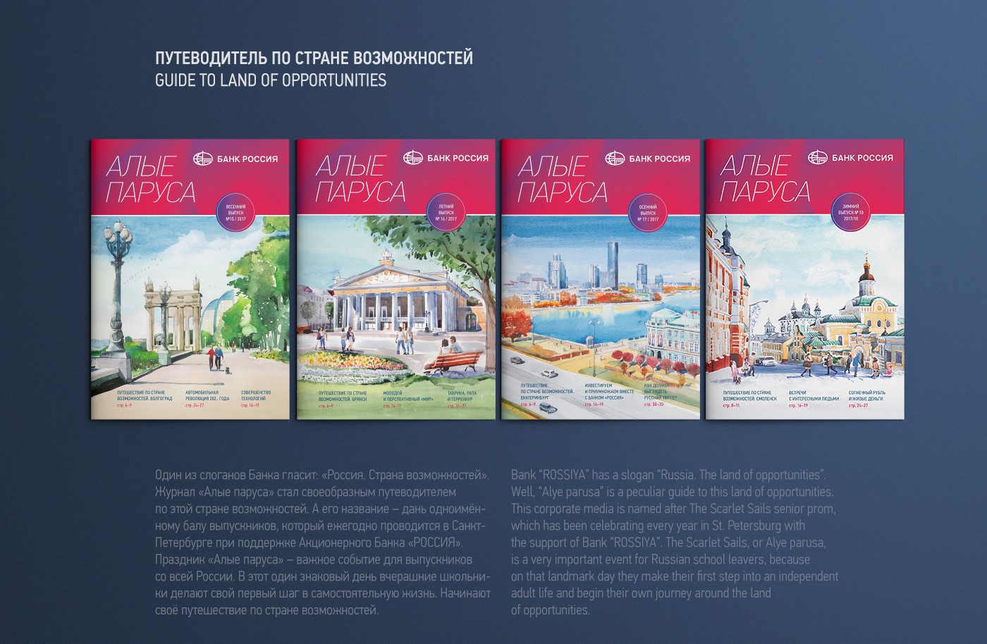 Читатели журнала «Алые паруса» – физические лица, потенциальные и действующие клиенты Акционерного Банка «РОССИЯ», сотрудники предприятий – корпоративных клиентов Банка, как правило, пользующиеся следующими продуктами и услугами: банковские карты, денежные переводы и платежи, вклады и кредиты, сейфовые ячейки, депозитарные услуги, операции на рынке ценных бумаг, интернет-банкинг.