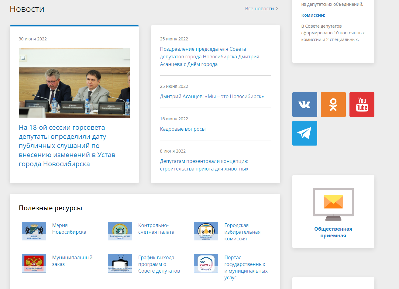 «Общественная приемная» - место, где каждый новосибирец может оперативно обратиться к своему депутату, председателю Совета, его заместителям, председателям профильных комиссий. К текстовому обращению возможно прикрепить фотографии, иллюстрирующие суть вопроса. На каждый запрос будет дан ответ в соответствии с установленными законом сроками. Здесь же даны разъяснения о том, как можно попасть на личный прием к народному избраннику или как правильно оформить письменное обращение. В разделе также размещены ответы на наиболее часто задаваемые вопросы и графики приема граждан.