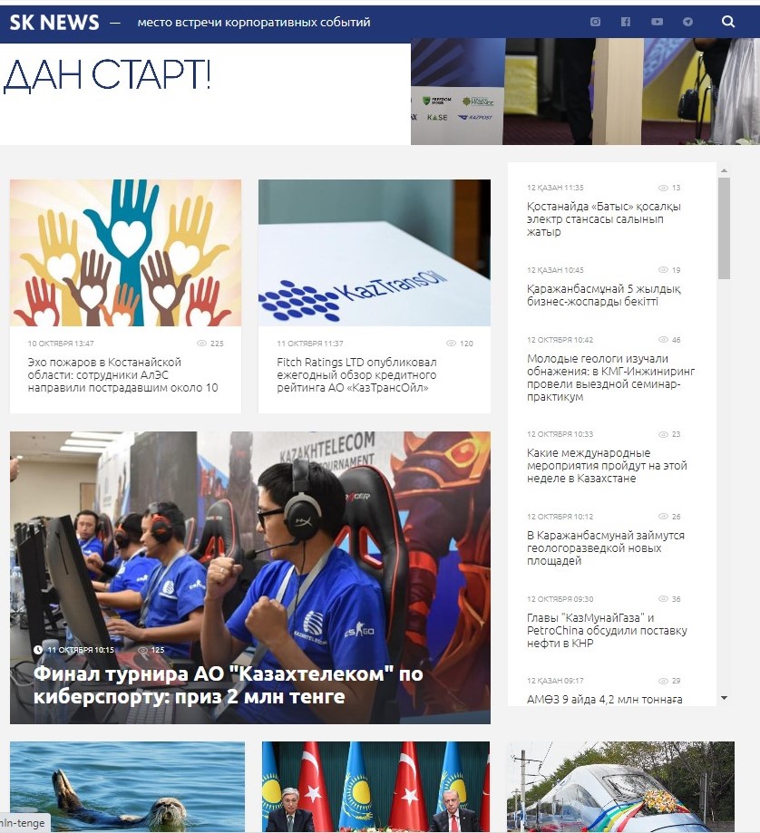 Ежедневный корпоративный сайт SK NEWS (sknews.kz), более 4 тысяч посещений в день. Порядка 20-30 новостей из периметра предприятий Фонда национального благосостояния "Самрук-Казына" в день.