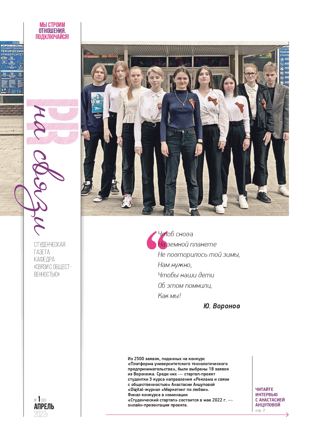 Автор: СКРИПНИКОВА НАДЕЖДА НИКОЛАЕВНА, заведующая кафедрой "Связи с общественностью" ВГТУ; Модератор проекта - Ситник Софья, студ. 3 курса.