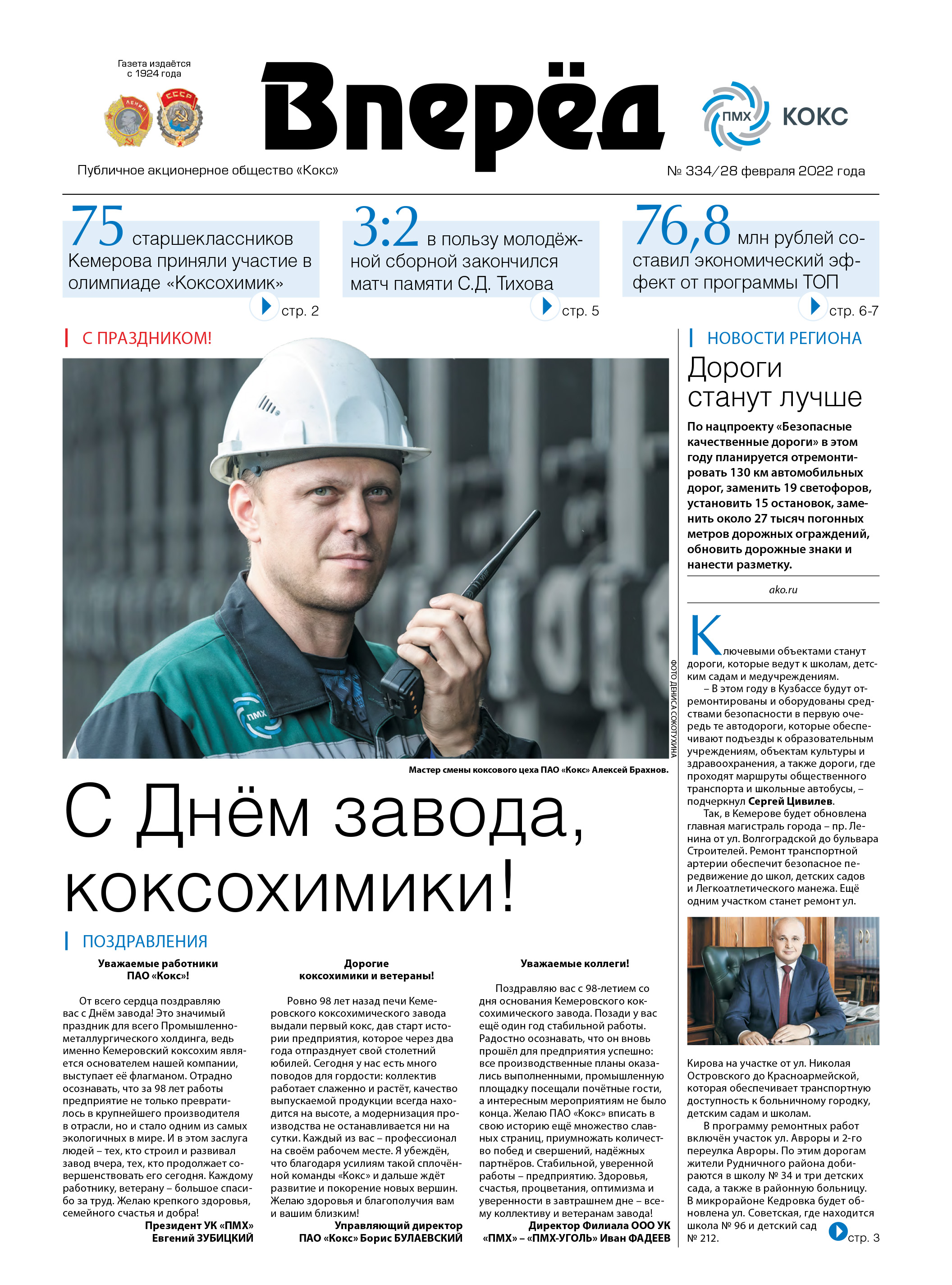 Сегодня корпоративная газета «Вперёд» ставит перед собой серьезные задачи - оставаться интересной и востребованной для читателя. Ведь аудитория издания насчитывает 25 000 заводчан, работников угольных предприятий и членов их семей.