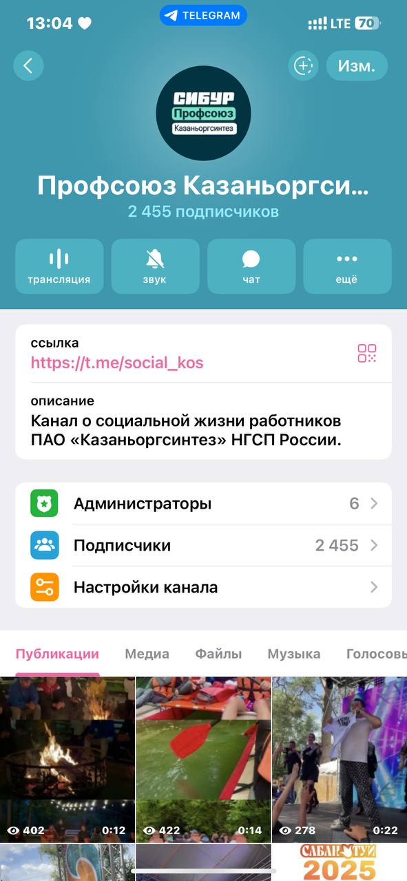 Более половины наших сотрудников — свыше двух тысяч человек из четырёх тысяч — активно следят за новостями нашего профсоюза через Telegram-канал. Они регулярно получают оперативную информацию обо всех инициативах и мероприятиях организации, узнают о новых льготах и возможностях, предоставляемых членам профсоюза. Благодаря удобной платформе участники легко регистрируются на культурные и спортивные события, принимают участие в голосованиях и опросах, оставаясь в курсе всего происходящего. Такой эффективный способ коммуникации позволяет нам поддерживать тесную связь с сотрудниками, оперативно реагировать на запросы и пожелания, укрепляя единство трудового коллектива и повышая социальную активность каждого члена профсоюза.