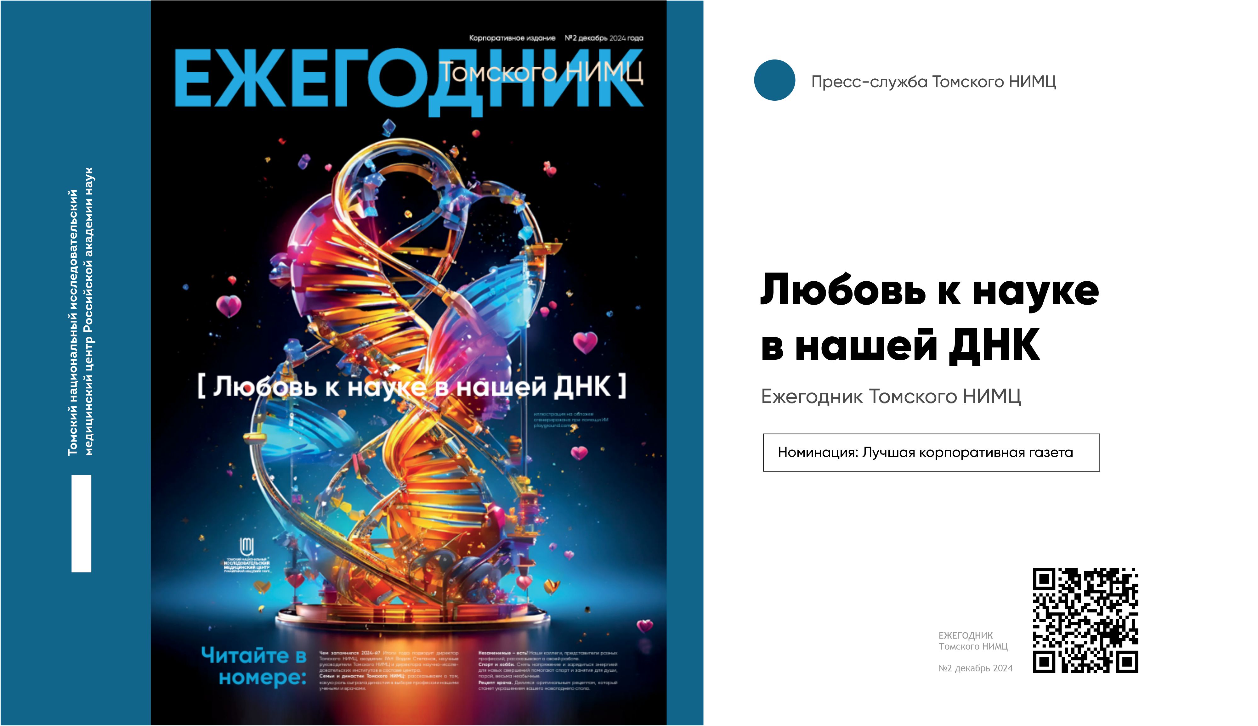 Ежегодник Томского НИМЦ является официальным печатным изданием, выпущенным в декабре 2023 года, было 2 выпуска. Проект направлен на демонстрацию вклада каждого сотрудника в развитие центров, составляющих основу Томского НИМЦ. Каждый номер включает материалы, раскрывающие историю научных семей, ключевые события года, интервью с руководителями, научные открытия и культурные мероприятия.