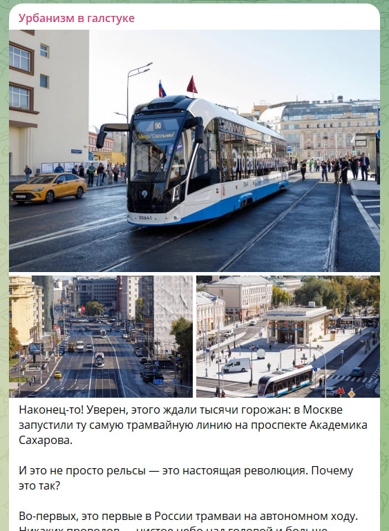 Telegram-канал «Урбанизм в галстуке» — это открытая площадка для всех, кто интересуется транспортной урбанистикой и развитием городской среды. Запущенный в 2022 году от лица директора Института Владимира Титова, канал стал настоящим «проводником» между экспертным сообществом и широкой аудиторией. Здесь простым и понятным языком рассказывается о крупнейших транспортных проектах Москвы, к которым причастен МосТрансПроект, а также о лучших мировых практиках урбанистики. Особенность канала — в живом диалоге с подписчиками: мы внимательно анализируем интересы аудитории, отслеживаем отклик на публикации, выпускаем отдельные материалы по вопросам, которые задают пользователи в комментариях, и формируем дискуссии.