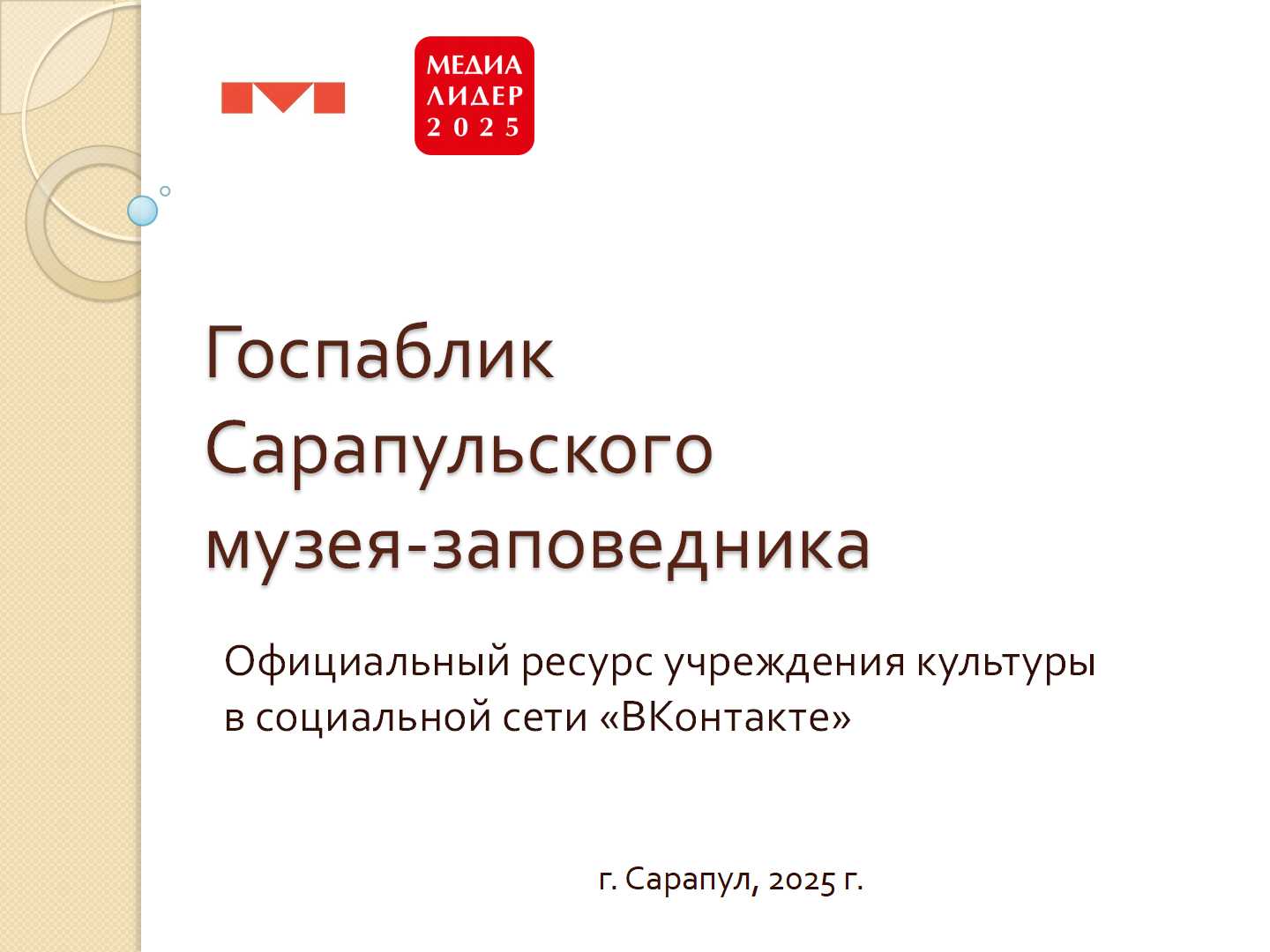 В современном мире музеи стремятся не только хранить и транслировать историко-культурное наследие, но и активно взаимодействовать с широкой аудиторией. В эпоху цифровых технологий музеи все активнее используют социальные сети как инструменты для продвижения своих инициатив и взаимодействия с аудиторией. Одним из инструментов такого взаимодействия становится музейный госпаблик – возможность для пользователей музея участвовать в его жизни, обмениваться мнениями и опытом, а также влиять на развитие музейных программ. Примером эффективной работы в этом направлении является Сарапульский музей-заповедник, который с успехом реализует концепцию открытого и доступного музея.