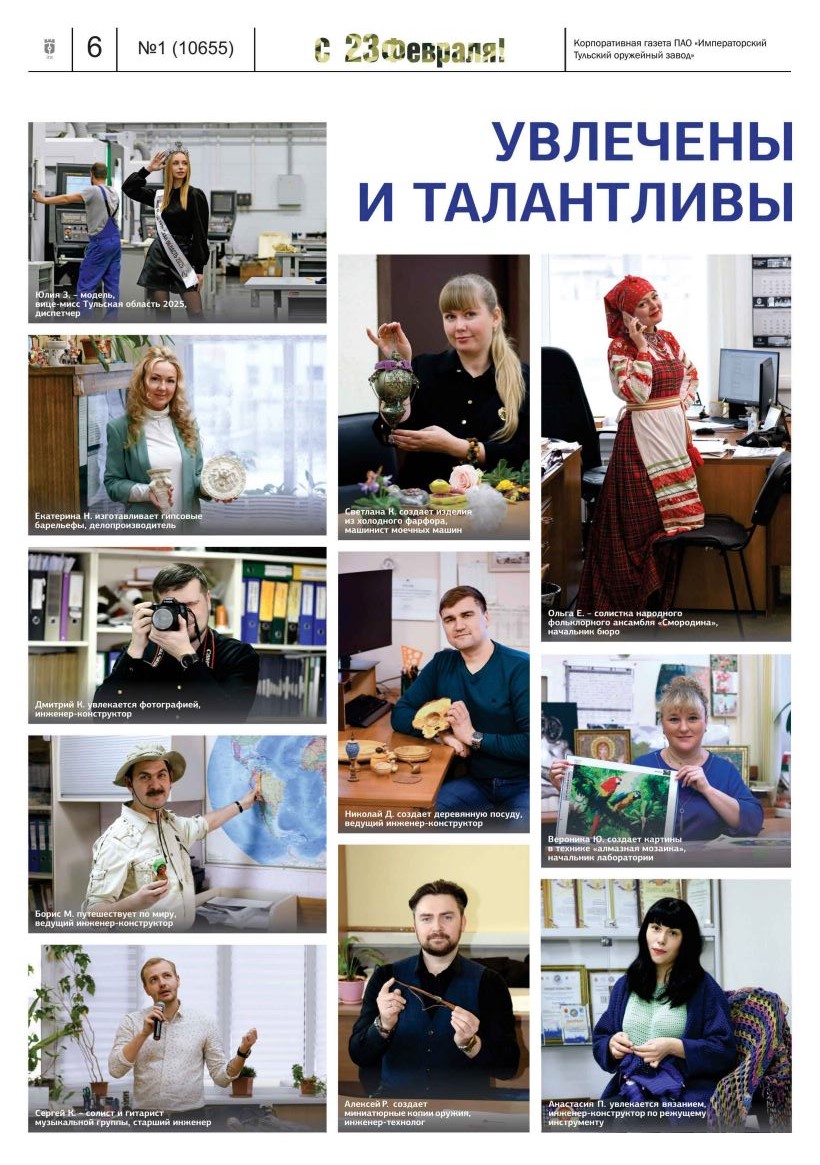 Именно фотопроект «Увлечены и талантливы» стал своего рода заявлением читателям о том, что в газете отныне визуальный ряд будет играть не меньшую роль, чем текстовая информация. В проекте представлены сотрудники на своих рабочих местах, будь то цех или кабинет. Контраст создают объекты, напрямую связанные с хобби этих людей: специальная одежда, изделия ручной работы, инструменты.