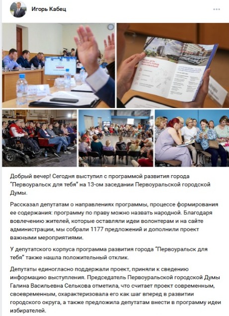 Работа главы Первоуральска Игоря Кабца – это яркий пример современного подхода к управлению городом, где жители имеют возможность напрямую общаться с властью. Игорь Кабец активно ведёт личные страницы в социальных сетях, оперативно реагирует на вопросы горожан в личных сообщениях и делится важной информацией о текущих инициативах. Такой формат взаимодействия с населением повышает доверие, способствует прозрачности в работе власти и ускоряет решение городских проблем.