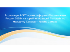 Проведение Форума малоэтажная Россия, организованная Ассоциацией участников рынка малоэтажного и индивидуального жилищного строительства (Ассоциация МЖС) на теплоходе "Алексей Толстой" по маршруту Самара-Казань-Самара