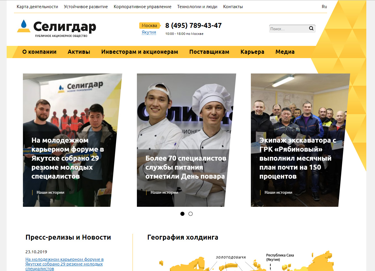 Официальный сайт ПАО "Селигдар" размещен по адресу www.seligdar.ru. Сайт является визитной карточкой российского золотодобывающего холдинга. Основные пользователи - журналисты, инвесторы, персонал, кандидаты на трудоустройство.
