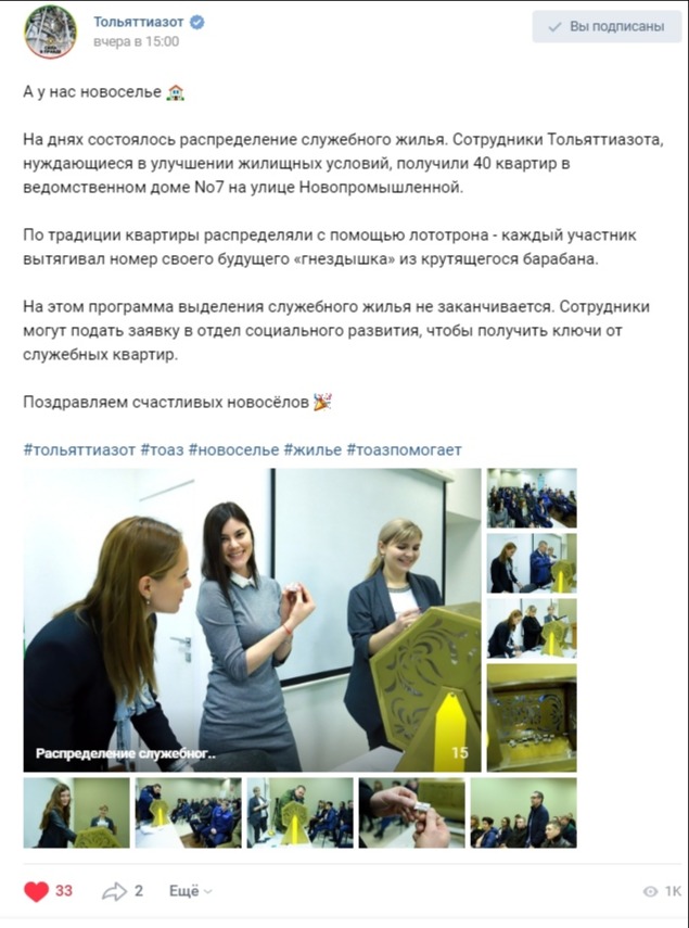 За время работы в социальных сетях мы смогли выстроить не просто доверительные, но даже дружеские отношения со многими подписчиками. Тем более что большая часть наших читателей - это сотрудники предприятия. Им нравится читать о себе, о жизни компании, в которой они работают. Они ставят лайки, пишут комментарии, пишут личные сообщения в адрес страницы.