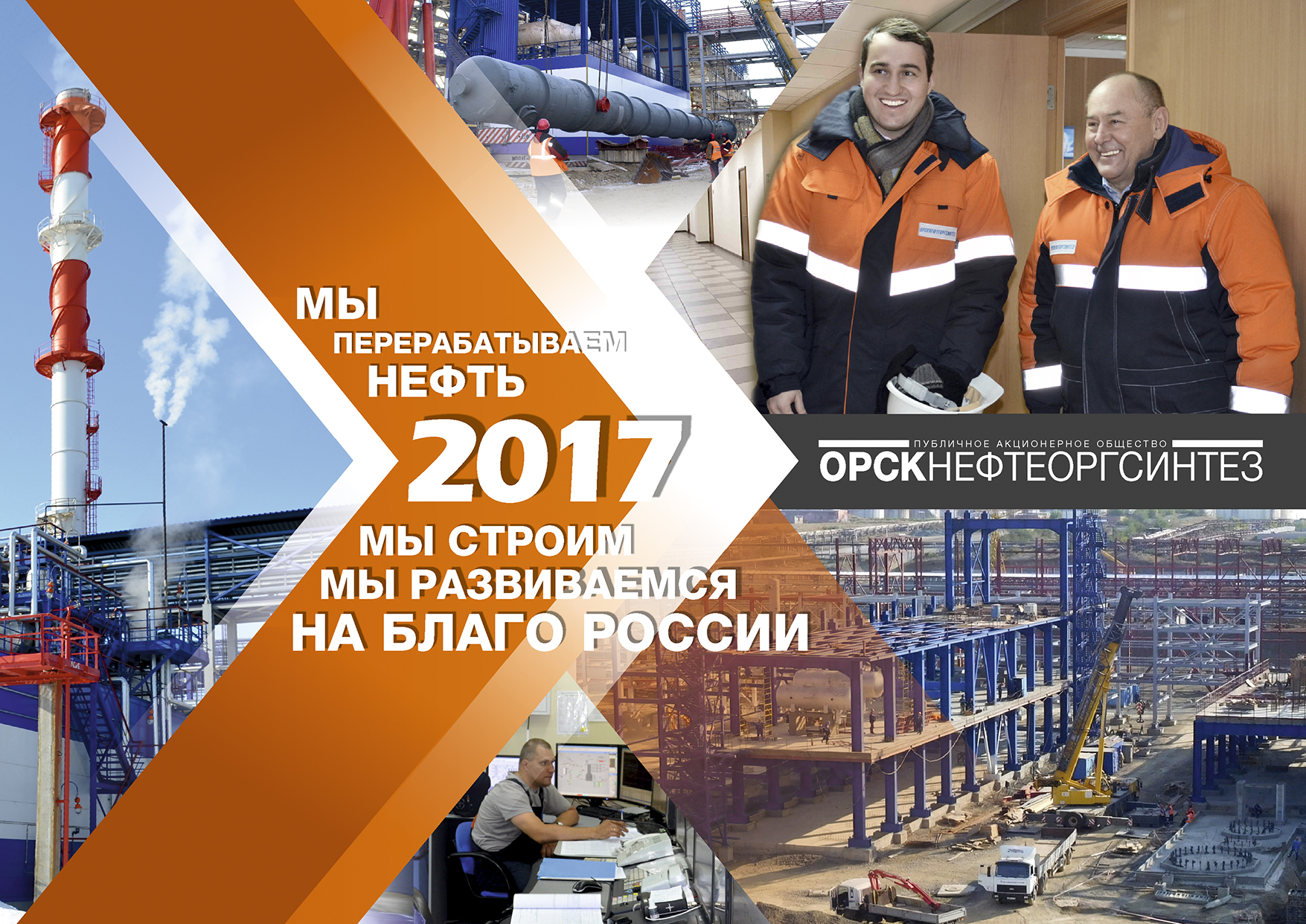 Календарь оформлен в корпоративных цветах ПАО «Орскнефтеоргсинтез» и отражает современные тенденции промышленного дизайна. В основе концепции календаря – ключевые события из жизни Орского НПЗ: визит акционеров предприятия, этапы модернизации производства, запуск новых объектов.
