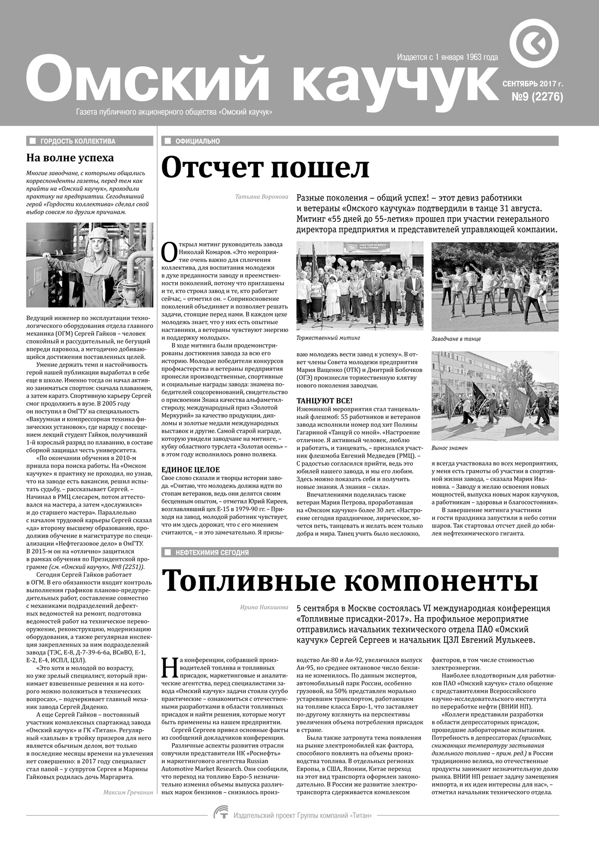 В связи с 55-летним юбилеем завода "Омский каучук", в течение всего 2017 года на страницах газеты выходили исторические материалы о людях, внесших значительный вклад в развитие предприятия, а также о событиях, вошедших в летопись промышленного гиганта.