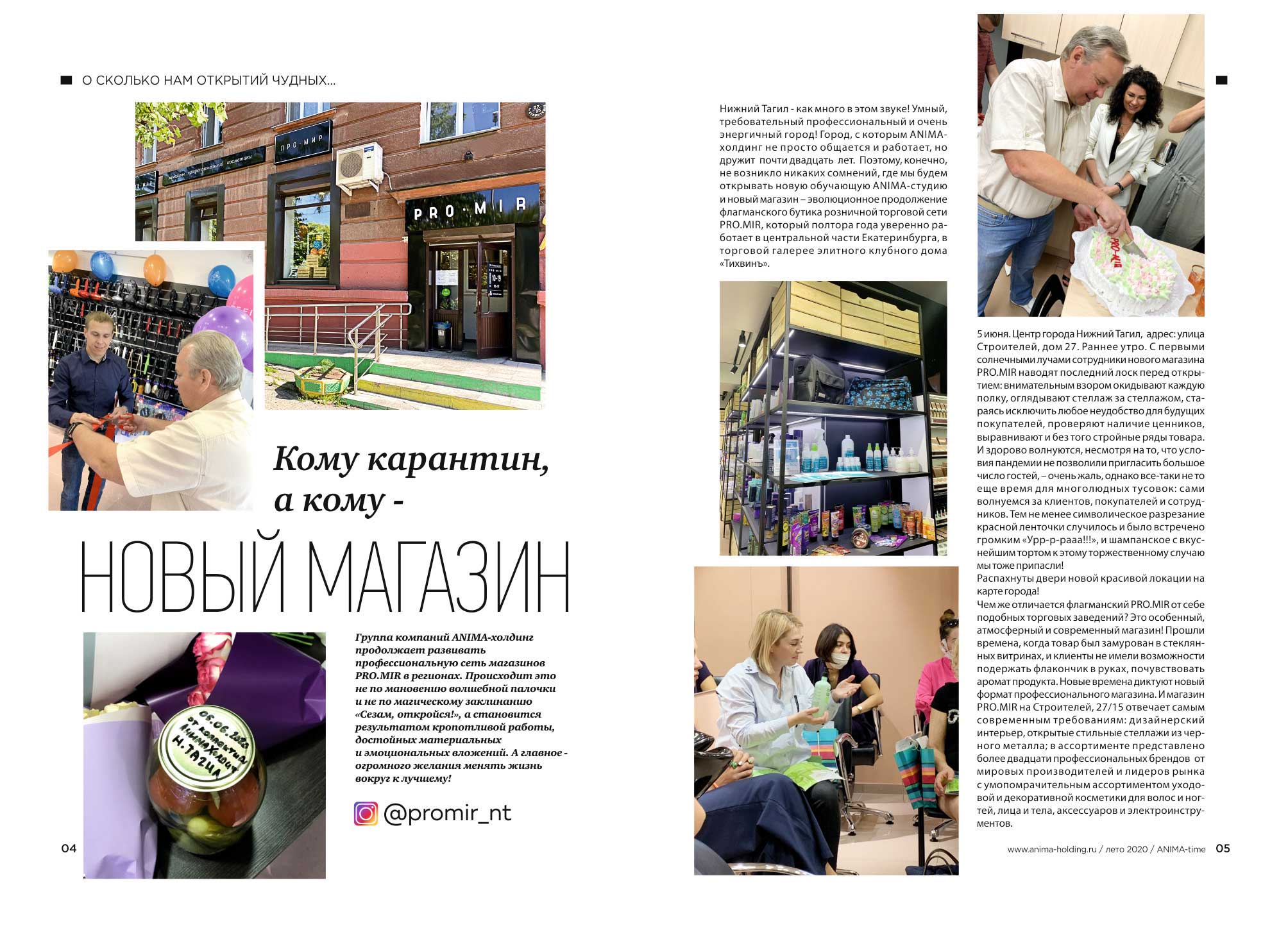 - в сети магазинов «ПРО МИР» Екатеринбурга и Свердловской области, в офисе (шоу-рум) ANIMA-холдинга;