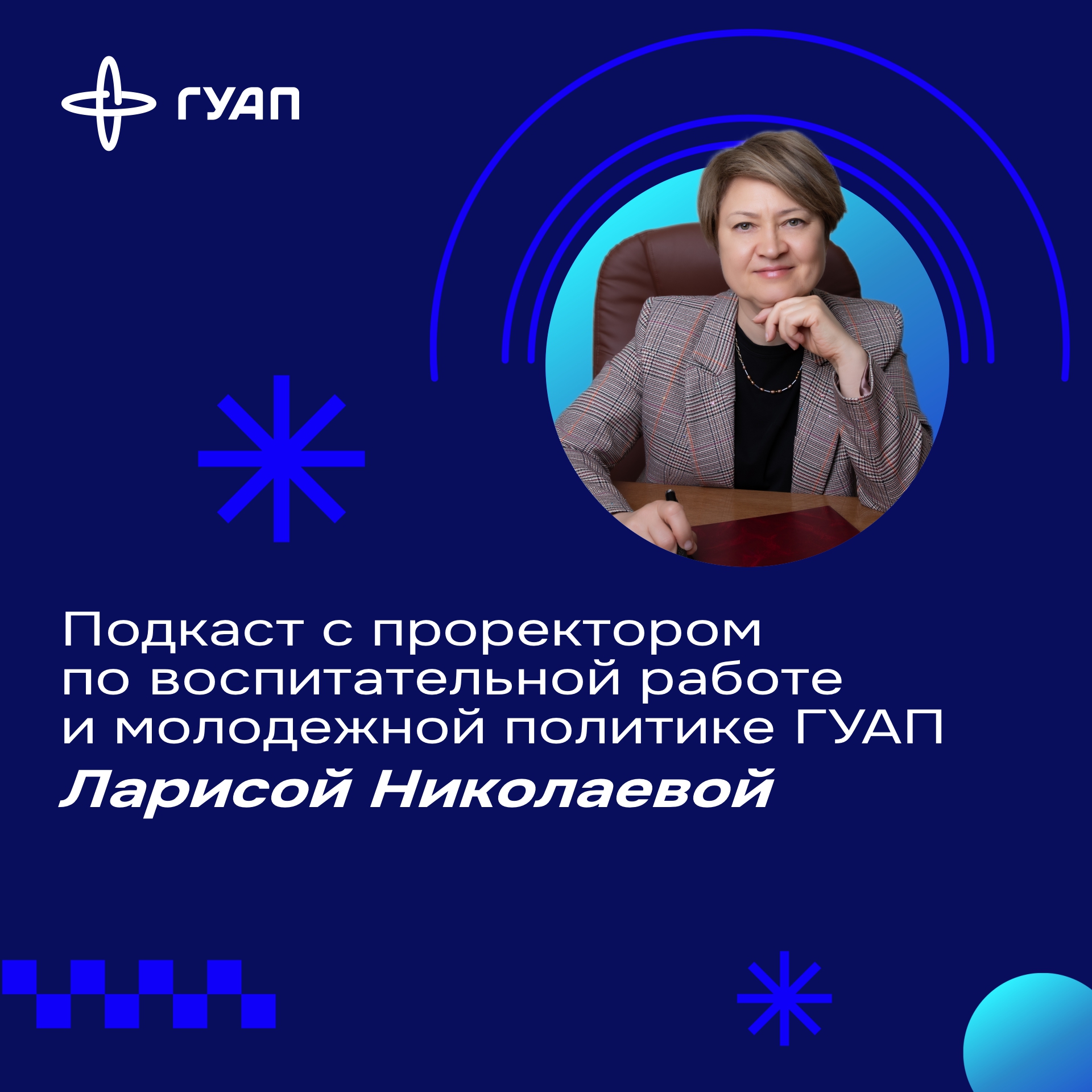 Серия подкастов с проректором по воспитательной работе и молодежной политике Государственного университета аэрокосмического приборостроения Ларисой Игоревной Николаевой, и ведущей Рыжаковой Ириной — начальником отдела социальных медиа и визуального контента ГУАП.