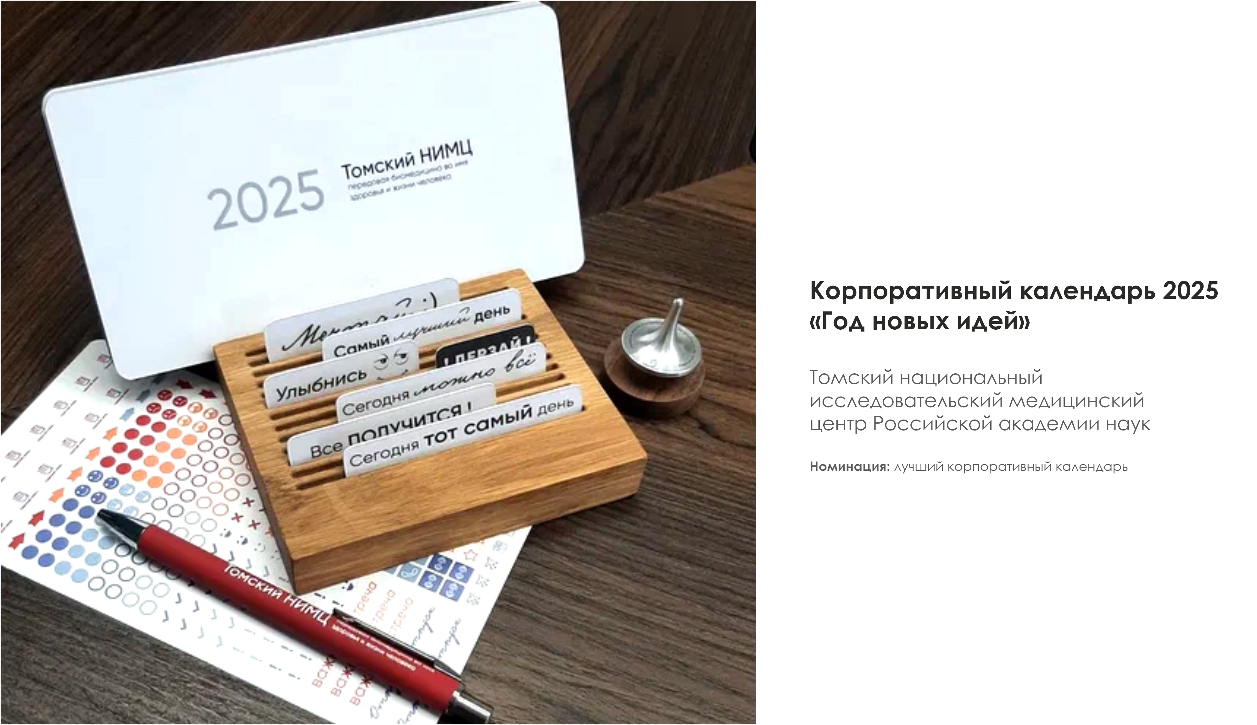 Настольный календарь «Год новых идей» выполнен в уникальной концепции, основанной на идее использования уже проверенной подставки. Его отличительные особенности включают оригинальные иллюстрации, созданные искусственным интеллектом, набор мотивирующих карт и наклейки, позволяющих персонализировать календарь и сделать его удобным инструментом ежедневного планирования.