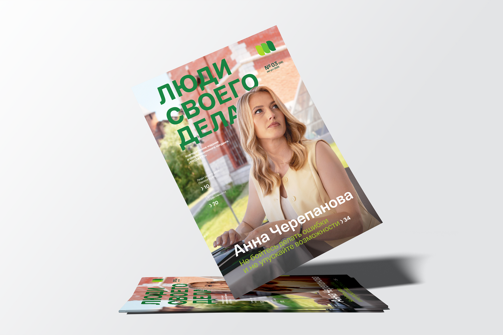 Общий визуальный код обновленного журнала передает фирменный стиль компании. Используя корпоративные цвета, мы сбалансировали нормы и требования бренд-бука холдинга и тренды современных медиа.