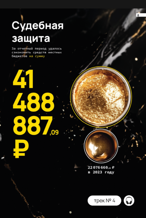 Данный отчет выполнил свою миссию. Изданный тиражом в 500 экземпляров, он выполнил презентационную функцию для наших действующих и потенциальных партнеров, показал нашит клиента-представителям органов власти муниципальных образований весь спектр нашей деятельности и услуг, а для коллектива стал мотиватором в части осознания единства и сопричастности к большому делу.