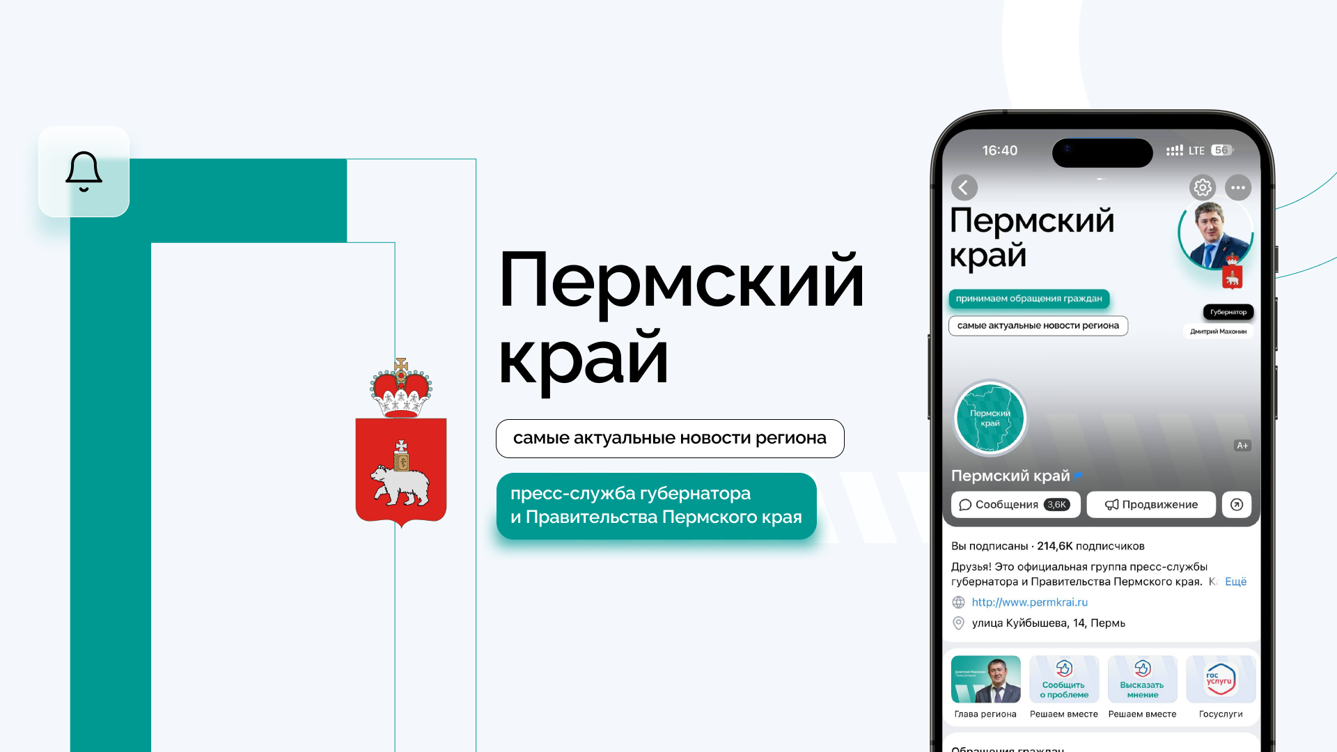 Официальная группа пресс-службы губернатора и Правительства Пермского края.