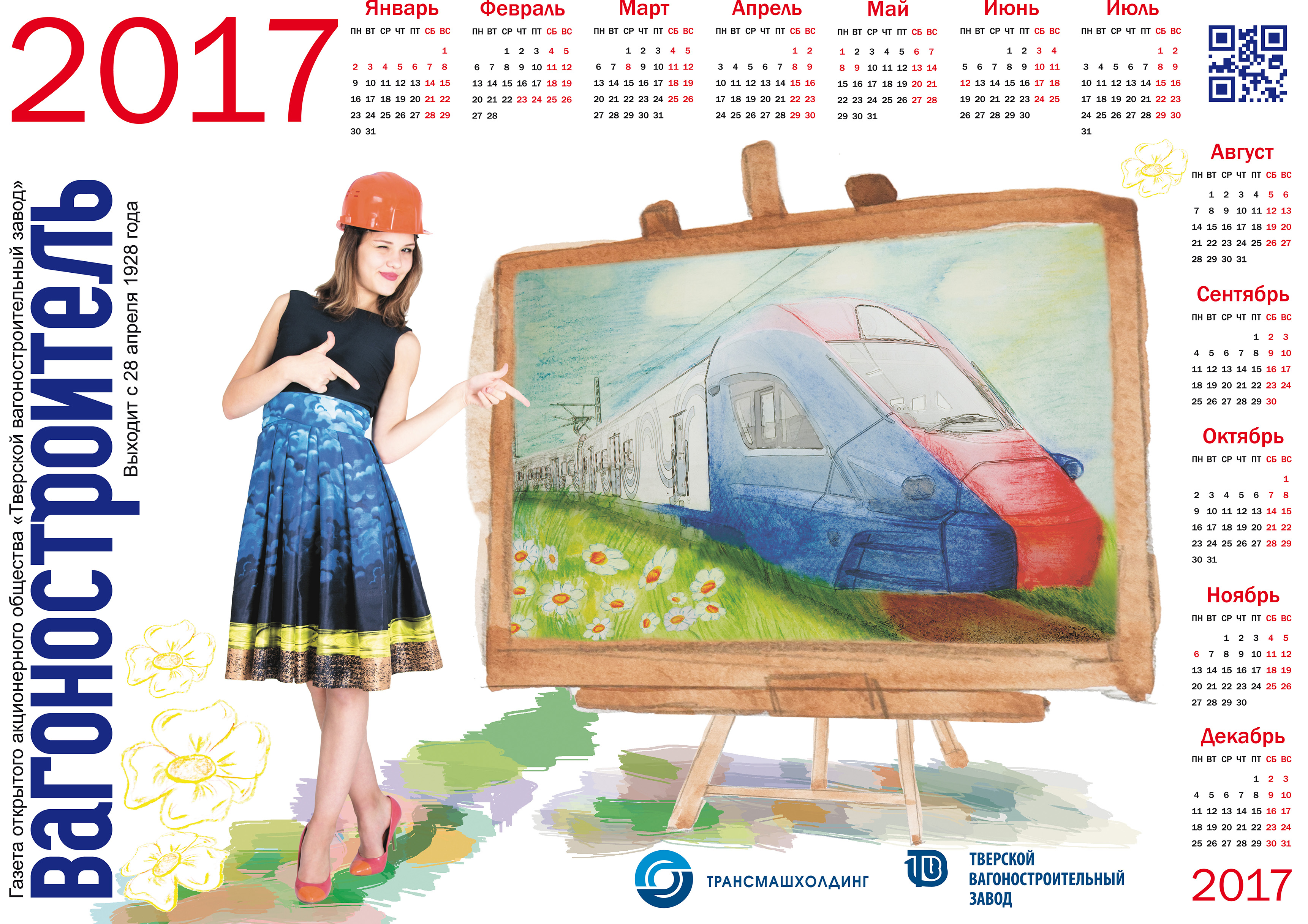 - разработан итоговый дизайн календарей на два года, отражающий динамику движения: на 2016 год – дети с чертежом двухэтажного вагона, на 2017 год – девочка-подросток со своим рисунком уже готового нового электропоезда, построенного на заводе