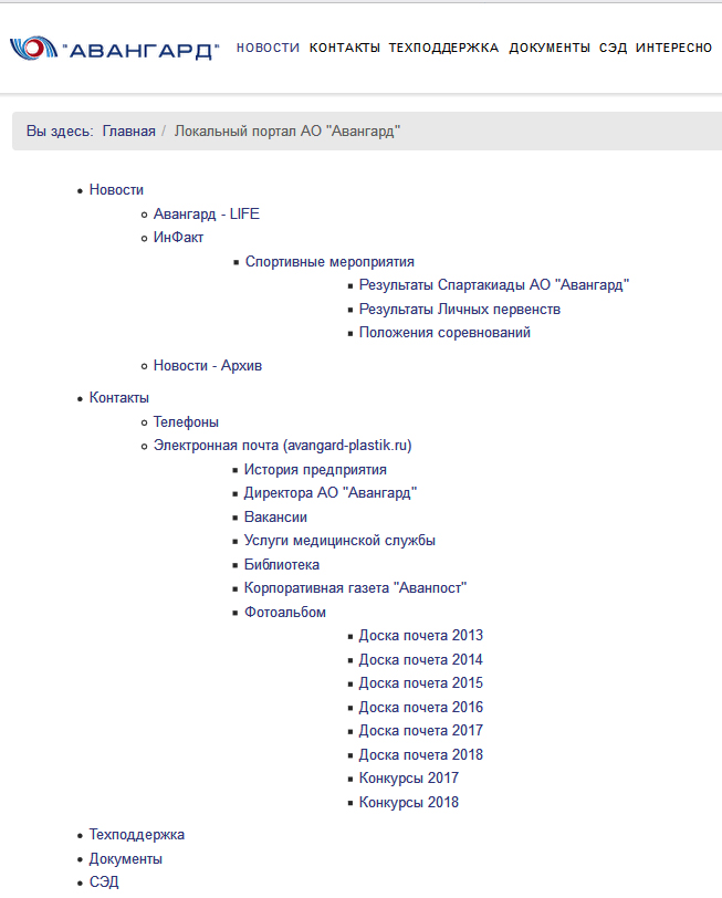 Интранет-портал АО «Авангард» разработан на базе CMS Joomla 3.x