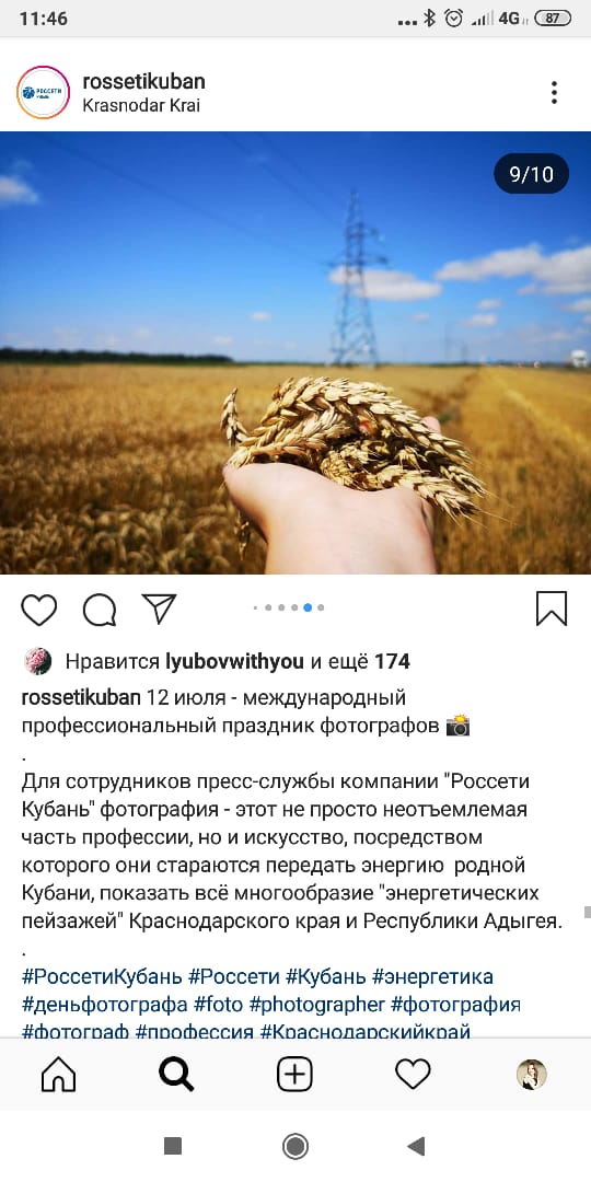 Аккаунт в Instagram компании "Россети Кубань"(rossetikuban) - официальный канал PR-продвижения компании "Россети Кубань".